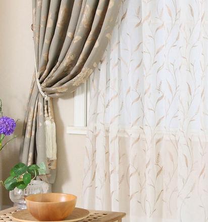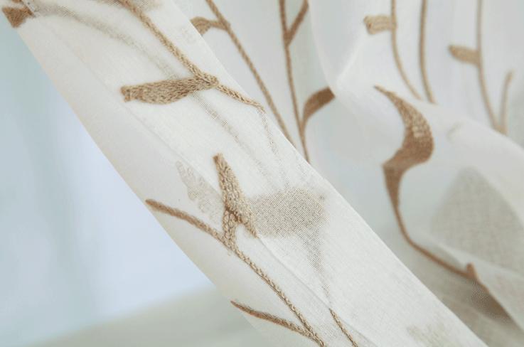 Embroidered curtain with Leaves pattern. Natural and romantic.