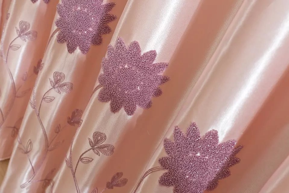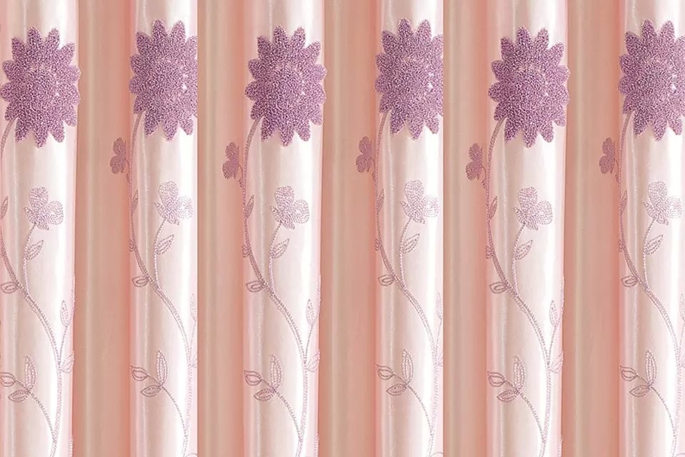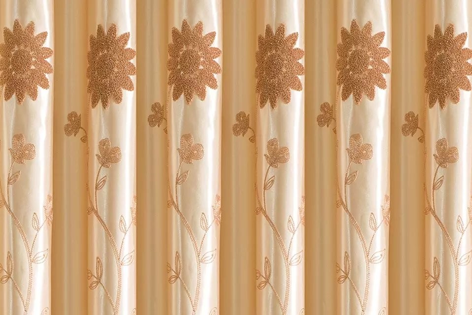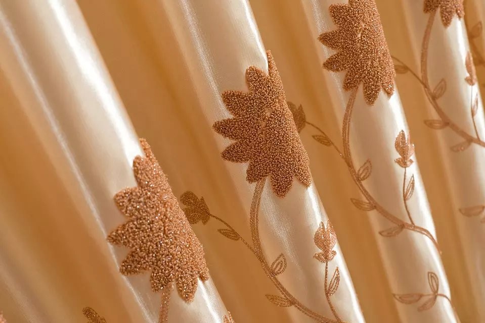 Curtain with thread-embroidery on poly taffeta. Shining and fashionable.