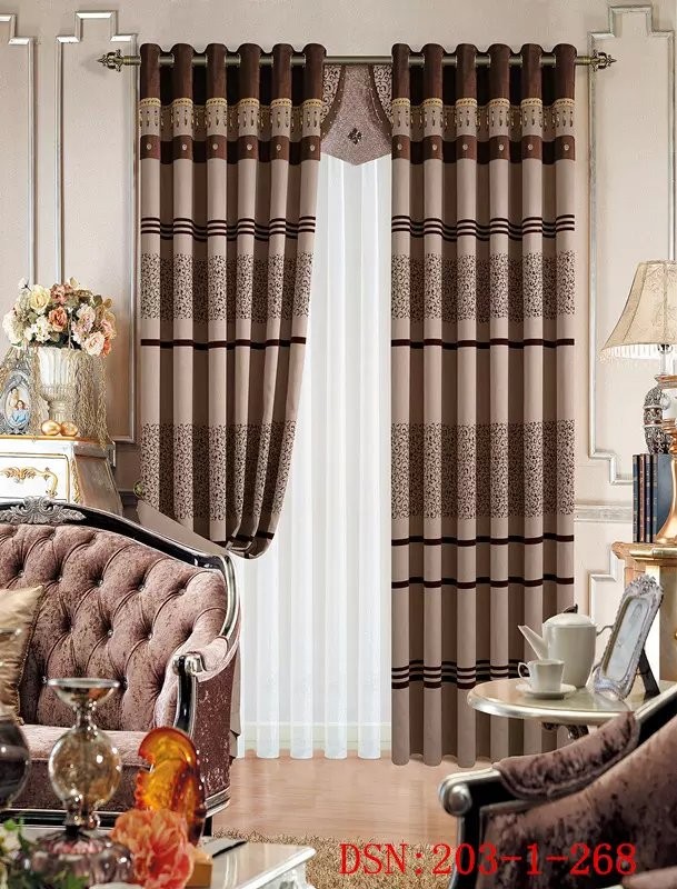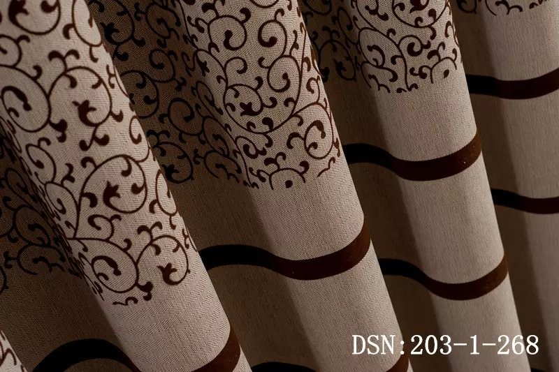 Curtain with delicate flocking pattern on linen fabric. Natural, elegant and noble.