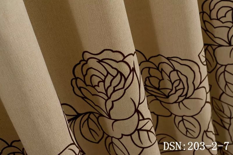 Curtain with delicate flocking pattern on linen fabric. Natural, elegant and noble.
