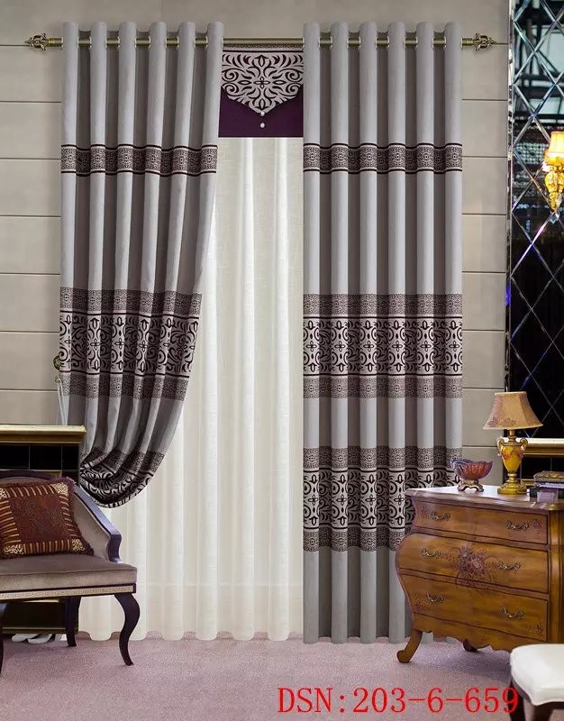 Curtain with delicate flocking pattern on linen fabric. Natural, elegant and noble.