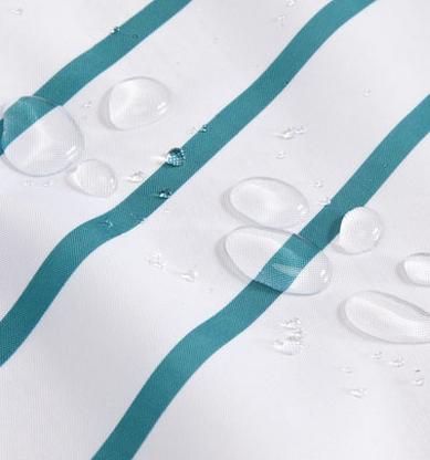 100% polyester printed shower curtain. Water-proof. Machine washable. Top with eyelets. Bottom with heavy bars.