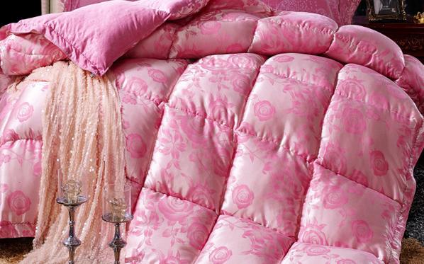 Bedspread/Comforter with soft polyester padding, jacquard fabric shell, and delicate quilting. Warm, light, comfortable and in fashion.