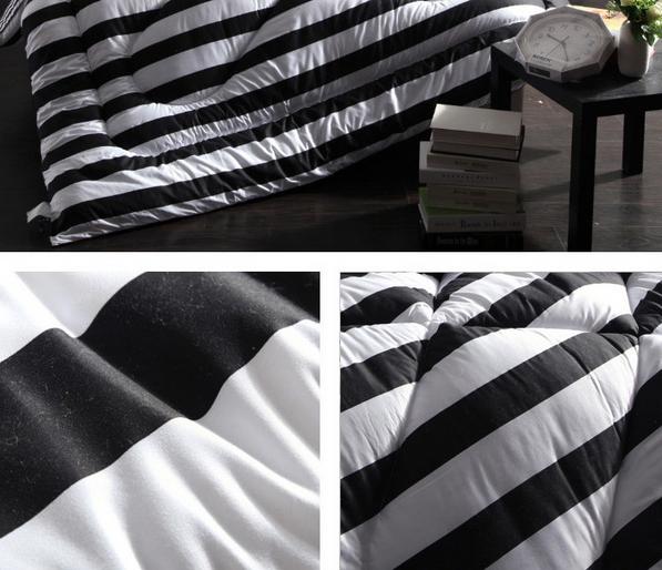 Bedspread/Comforter with soft polyester padding, microfibre fabric shell, black-white color, delicate quilting. Warm, light, comfortable and in fashion.